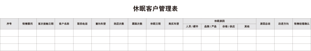 休眠客户管理表